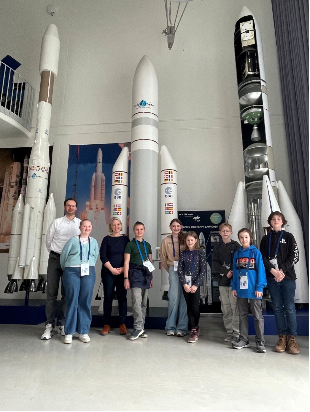 Am 25.03.2026 besuchte die Mkid-AG* von Herrn Gerlinger das Deutsche Zentrum für Luft- und Raumfahrt (kurz: DLR) in Lampoldshausen. Etwas versteckt im Wald testen Forscher auf über 30 Hektar neuartige Antriebssysteme und umweltfreundliche Treibstoffe. Ziel ist es diese leistungsfähiger, kostengünstiger und sicherer zu machen – dafür arbeiten rund 250 Mitarbeitende des DLR am Standort Lampoldshausen. Seit 1959 erforschen, entwickeln und testen sie innovative Technologien für chemische Raumfahrtantriebe an einer europaweit einzigartigen Prüfstandsinfrastruktur. (Quelle: dlr.de)