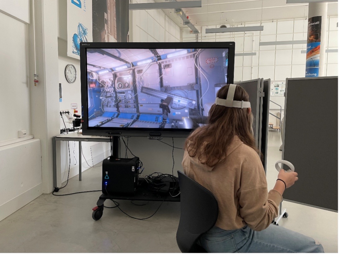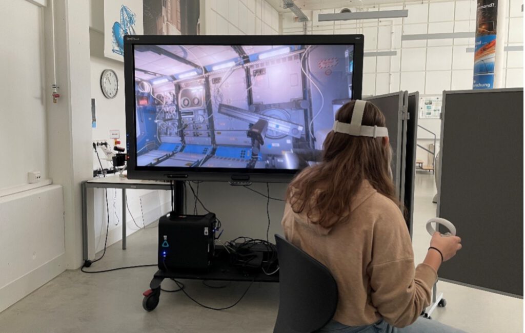 Virtueller Rundgang mit einer VR Brille und Joysticks - Das Vakuum im Weltraum