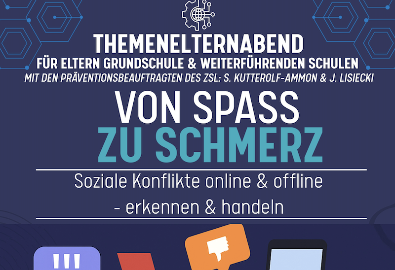 Liebe Eltern, der „Förderverein Schulverbund Creglingen“ lädt Sie ein zum zweiten Themenelternabend! Erneut konnten mit den Präventionsbeauftragten des ZSL Baden-Württemberg Frau S. Kutterolf-Ammon und J.