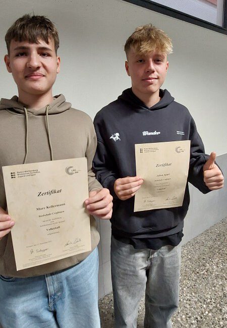 Unsere Zehntklässler, Julian Appel und Marc Kellermann, haben ihre Ausbildungen zum Schülersportmentor erfolgreich abgeschlossen und wenden nun ihr Wissen in
