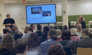 Jens Lisiecki und Sabine Kutterolf-Ammon bei der Diskussion mit Zuhörern
