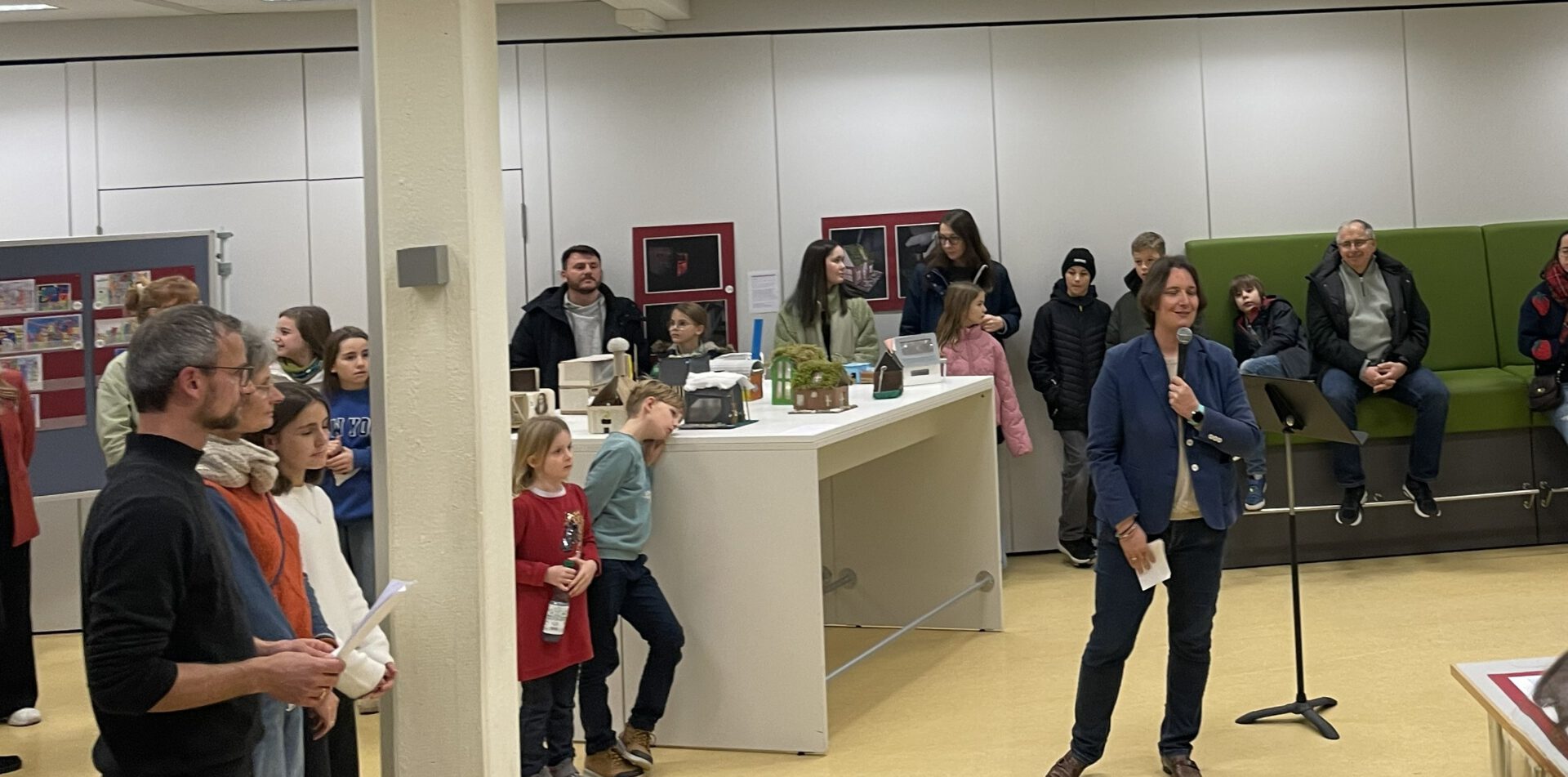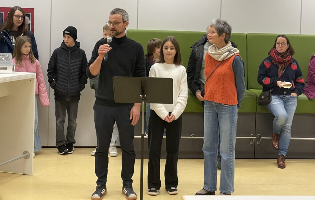 Die Eröffnung übernahm Schulleiterin Diana Romen, die das außergewöhnliche Engagement der Kunstlehrkräfte sowie der jungen Künstlerinnen und Künstler würdigte und sich herzlich bedankte. Anschließend begrüßten die Kunstlehrer Matthias Frede und Sabine Hofmann gemeinsam mit Fine Korbmann (Klasse 8a) die zahlreichen Gäste. Sie gaben Einblicke in die Entstehung der Ausstellung und betonten die kreative Vielfalt der Arbeiten.