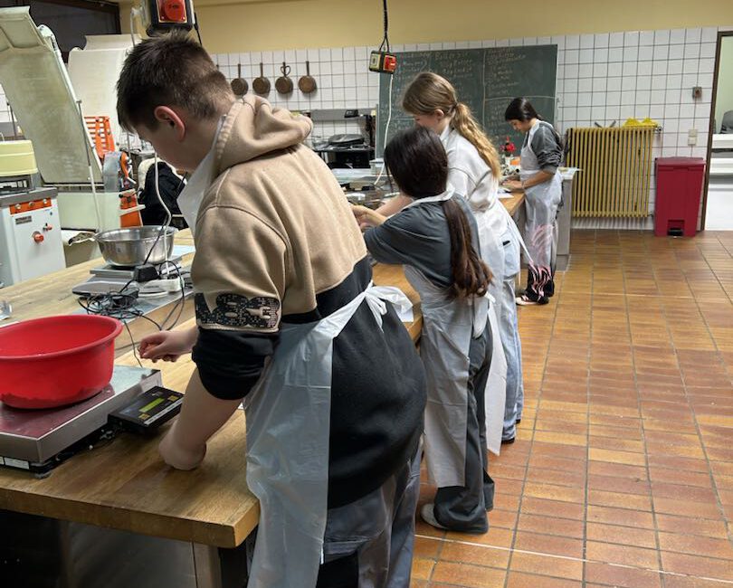 Wir verbrachten einen ganzen Schultag gemeinsam mit den Berufsschülerinnen und Berufsschülern und hatten die Möglichkeit, in Kleingruppen verschiedene Berufe kennenzulernen und uns praktisch auszuprobieren. Dabei konnten wir in die Berufsfelder Bäcker, Metalltechnik, Elektrotechnik und KFZ hineinschnuppern.
